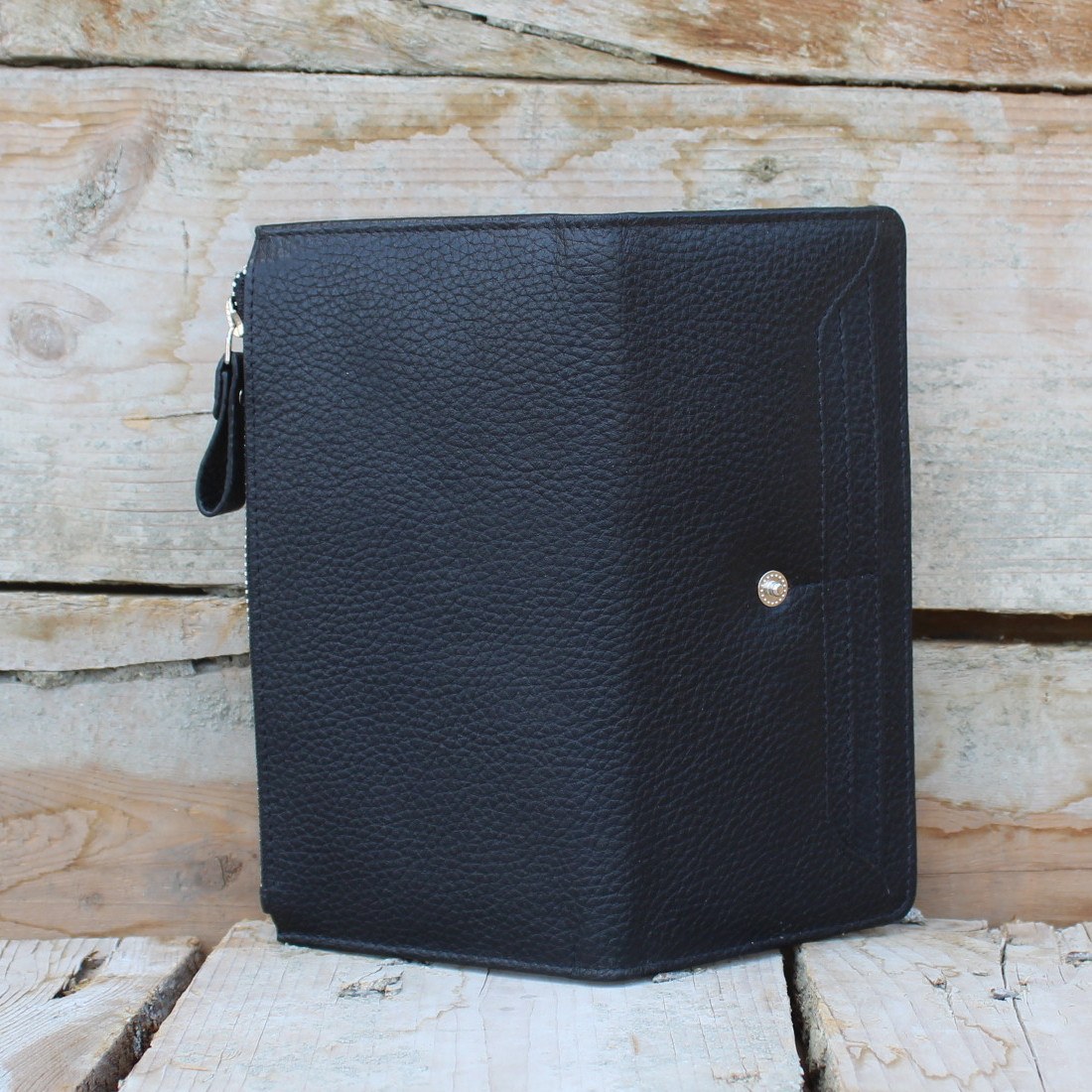 ✔ Sleek & Secure: The elegant magnetic snap closure ensures your belongings stay safe, while the timeless black leather complements any outfit, from professional to casual.
