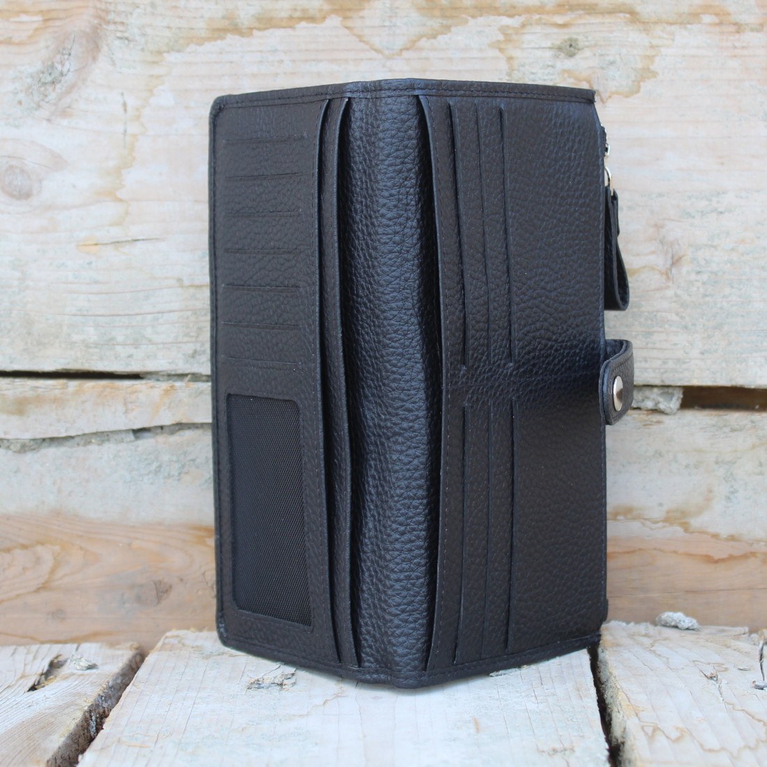 Experience the perfect fusion of sleek design and serious utility with our Black Breast Pocket Leather Wallet. Expertly crafted from supple Italian Top-Grain Leather, this wallet is designed for the modern woman who values both form and function. Its sophisticated black finish and structured silhouette are equally at home in a blazer pocket, a clutch, or your favorite handbag, offering unparalleled organization without the bulk.
