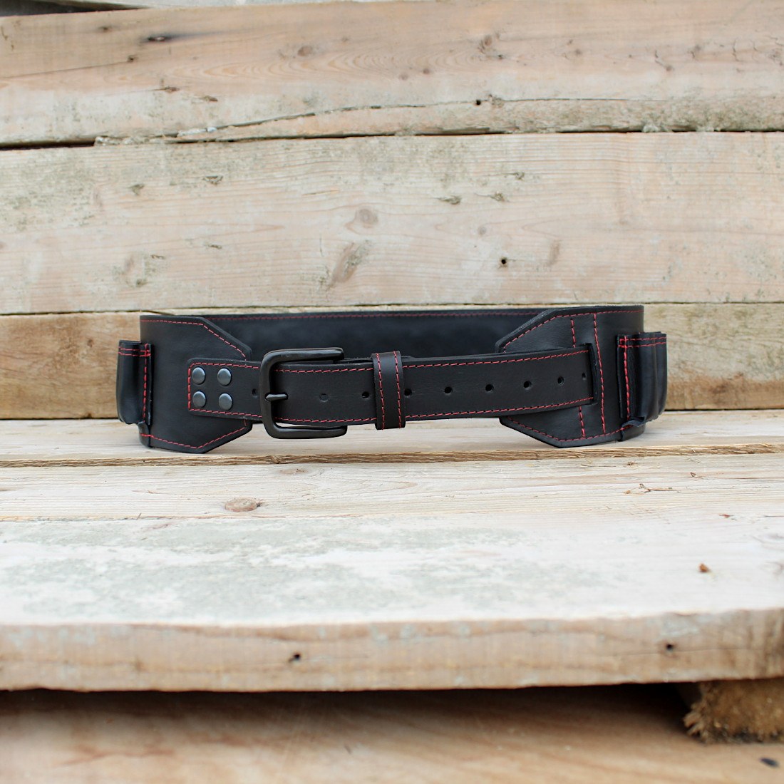 Bold red contrast stitching highlights the care and precision behind every loop and seam. This is not a mass‑produced accessory; it is a custom, made‑to‑order belt designed for serious outdoors use. You won’t find anything quite like it elsewhere.