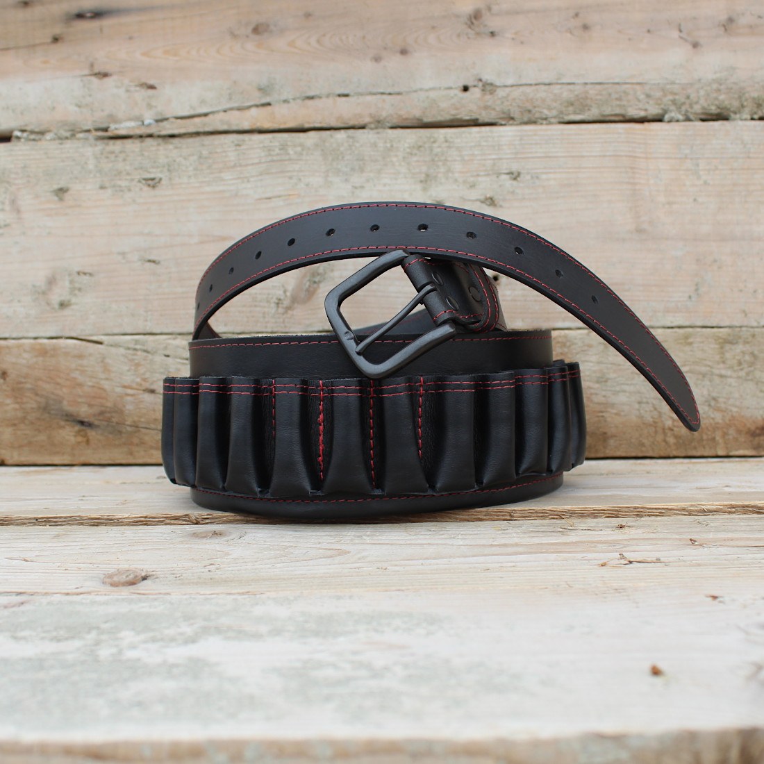 Handmade Black Leather Shotgun Shell Belt – 12GA/16GA/20GA