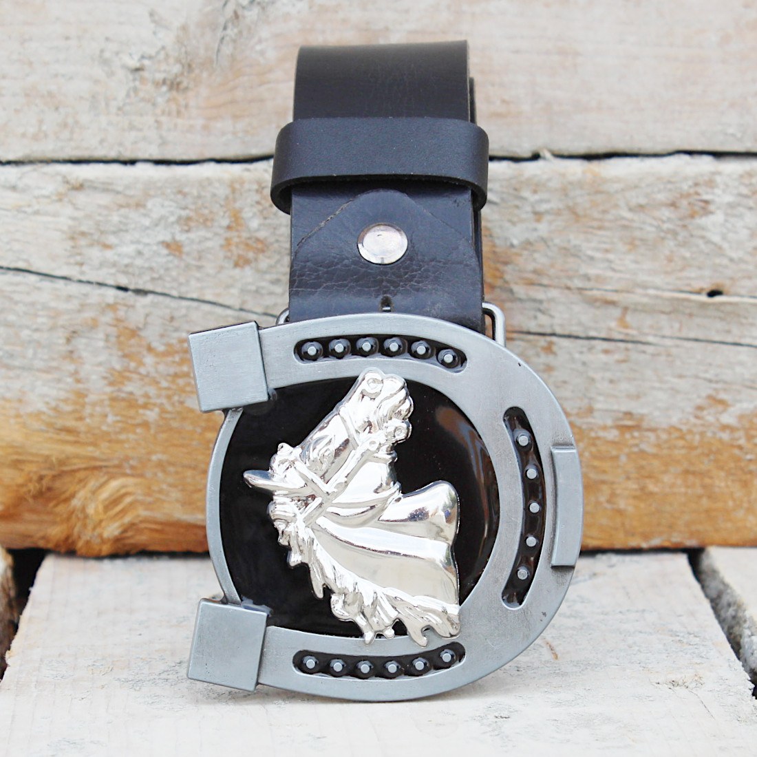 Be the first to review “Leather Belt with Horseshoe & Horse Head Buckle”